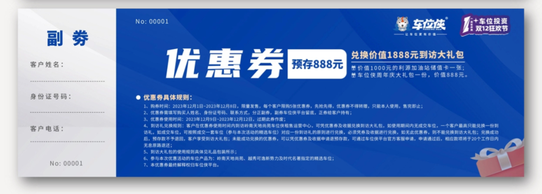 (优惠券购买日期2023年12月1-8日,限量发售,先到先得。具体兑换规则请咨询车位侠平台工作人员)