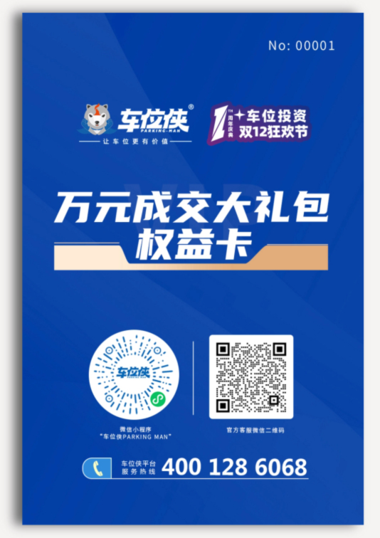 更多“车位侠周年庆典之车位投资双12狂欢节”活动详情,欢迎联系车位侠平台销售/客服,或是前往车位侠线下门店了解,我们衷心期待您的参与。